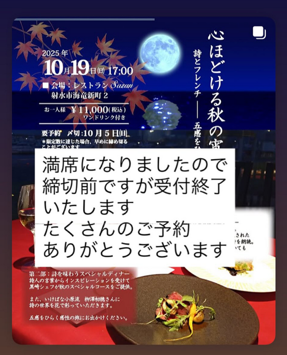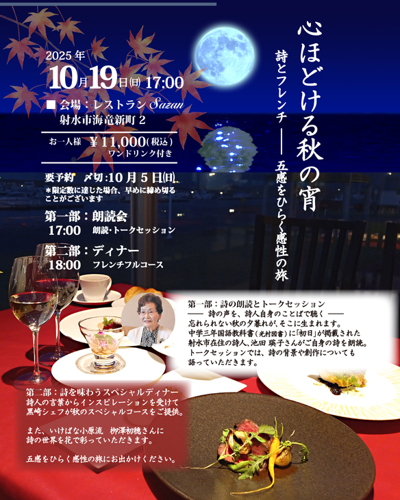 「心ほどける秋の宵 詩とフレンチ ― 五感をひらく感性の旅」