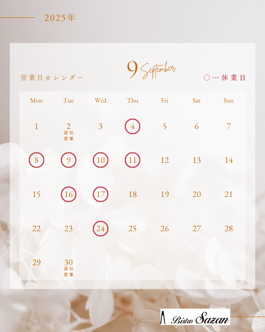 2025年9月の営業日をお知らせします。