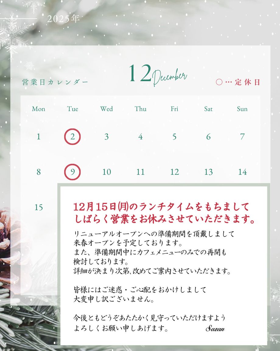 リニューアルオープンへの準備期間を頂戴しまして来春オープンを予定しております。